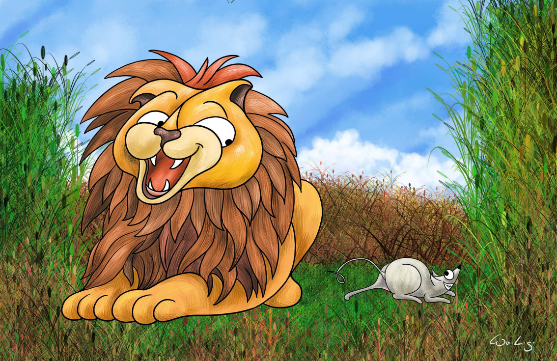 1. 一只狮子饱後犯困酣睡如泥,一只小老鼠误闯而入……