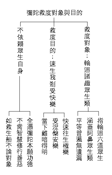 然而,阿彌陀佛卻對這些六道眾生主動呼喚說:「快快往生極樂,速得涅槃安樂。」這正顯示阿彌陀佛的救度並不依賴眾生自身的智慧、學問、修行與善惡,而是全憑阿彌陀佛本身的願力與功德。